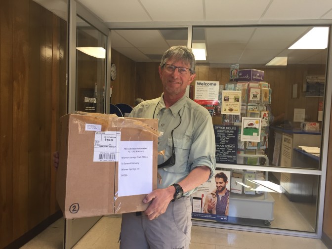In the morning, we walked the mile to the Warner Springs Golf Resort and had a fabulous California omelet (avocado, bacon, and cheese) with excellent hashed browns. Plenty of coffee and cold water too. Then we went over to the post office to pick up our 1st resupply package that was there as expected.