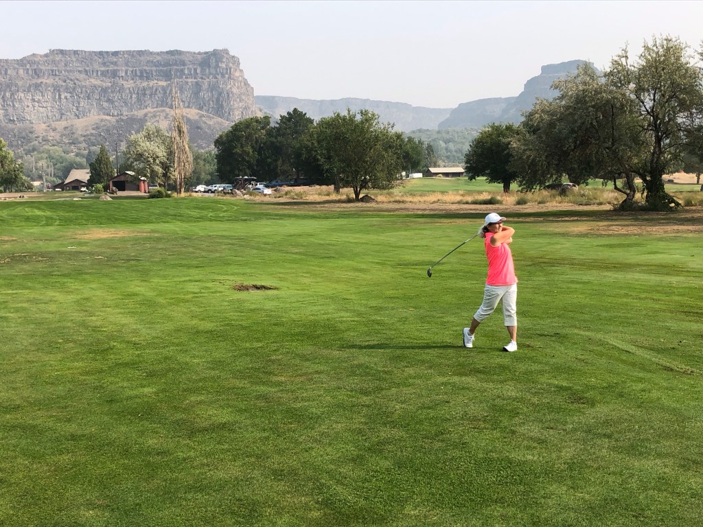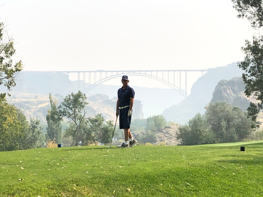Before we arrived in Twin Falls, we called ahead for a tee time at Canyon Springs Golf Course. It was situated way down in the bottom of the Snake River Canyon right in Twin Falls. There’s actually a lot of room down there!