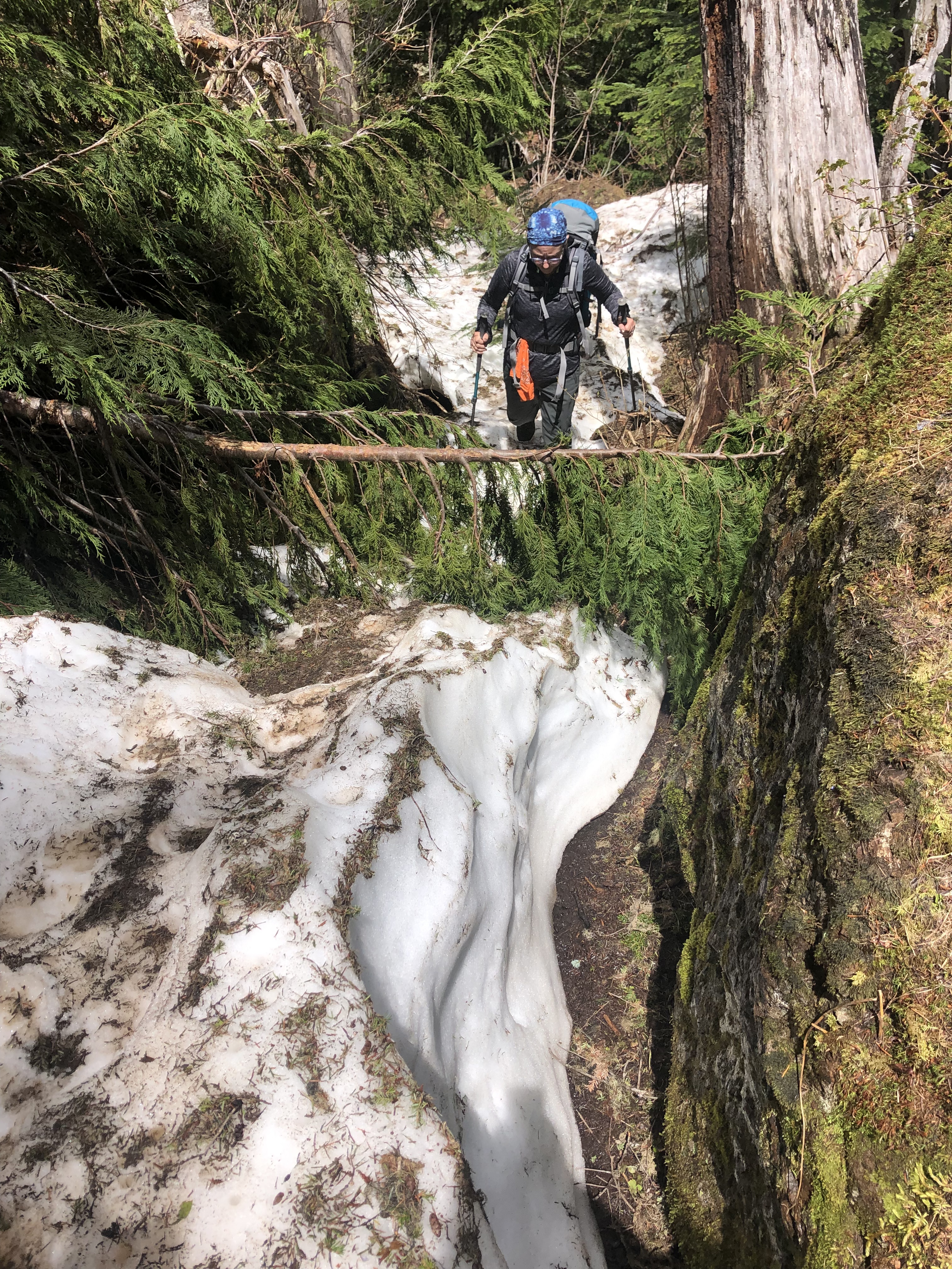 Too much snow was not expected but it was clogging the trail here. Not any significant problem for us, though. Seen things like this tons of times.