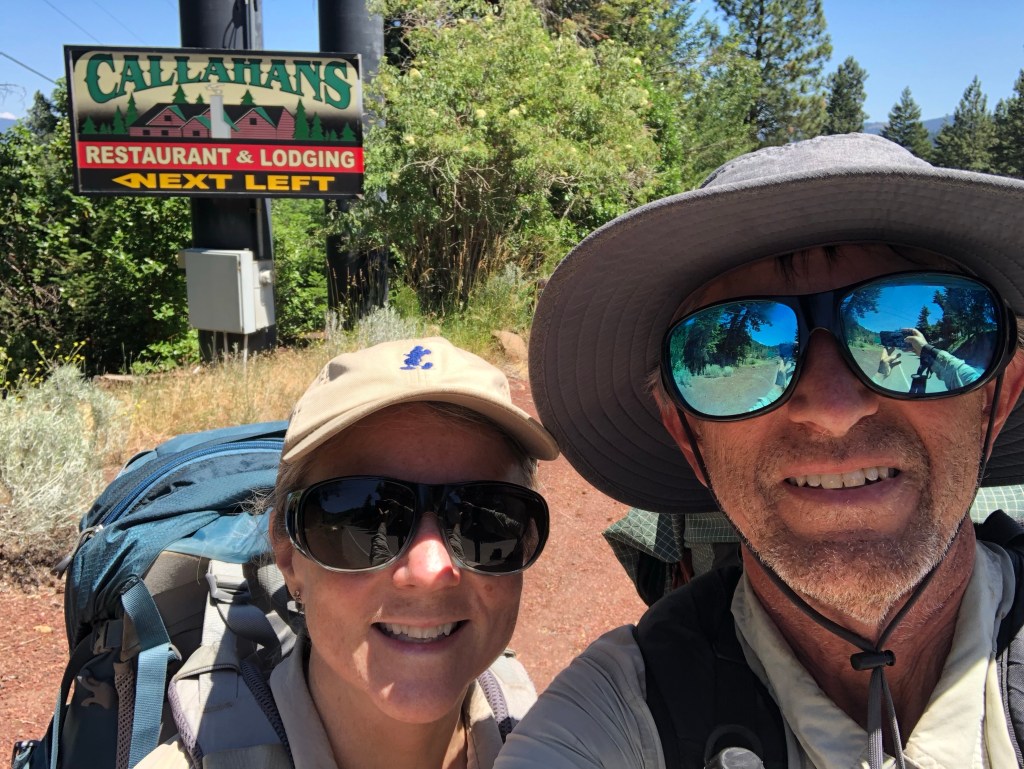 Diverted off the trail to Callahan’s Lodge on a side trail. Came out right next to I5. Walked under the freeway to the lodge looking for our supplies, a room, and food. Arrived just after 1pm.